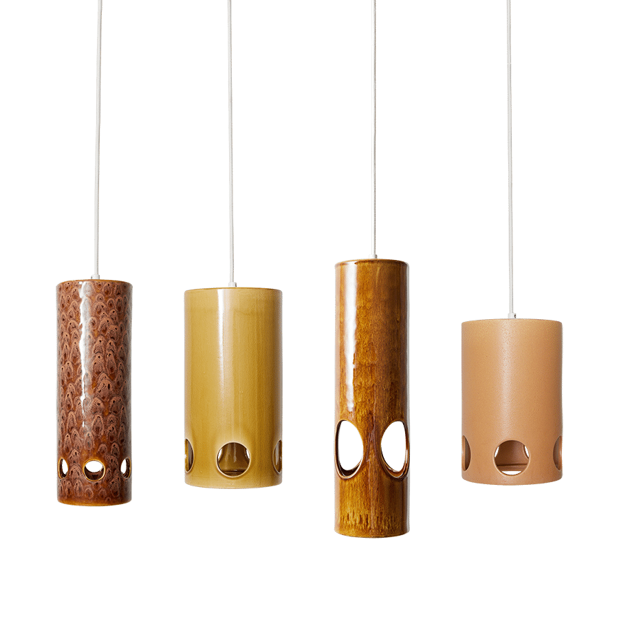 Maak een gedurfd statement met deze vintage-geïnspireerde keramische hanglampen. Deze lamp zal ongetwijfeld de aandacht trekken en een vleugje nostalgie toevoegen. Mix en match met de verschillende ontwerpen en maten of houd het simpel.